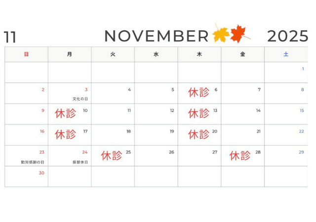 以下の日程は休診となりますので、ご来院の際はご注意ください!